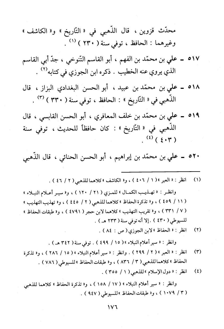 519 - علي بن محمّد بن خلف المعافري، أبو الحسن القابسي، قال الذّهبي في "التّاريخ": كان حافظًا للحديث، توفي سنة (403) (¬4).