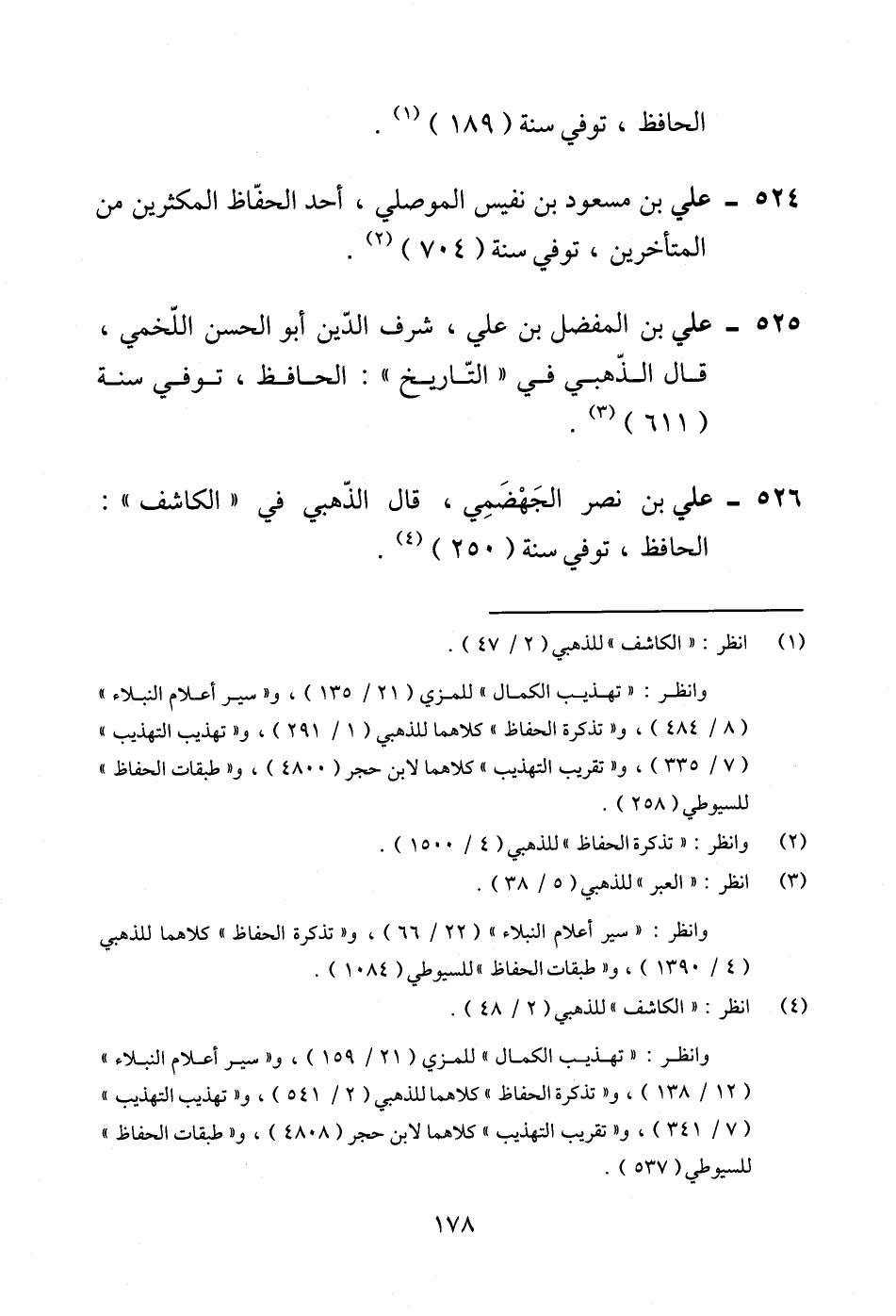 524 - علي بن مسعود بن نفيس الموصلي، أحد الحفّاظ المكثرين من المتأخرين، توفي سنة (704) (¬2).