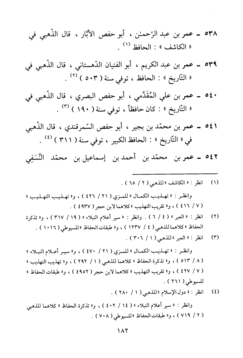 541 - عمر بن محمّد بن بجير، أبو حفص السّمرقندي، قال الذّهبى في "التّاريخ": الحافظ الكبير، توفي سنة (311) (¬4).