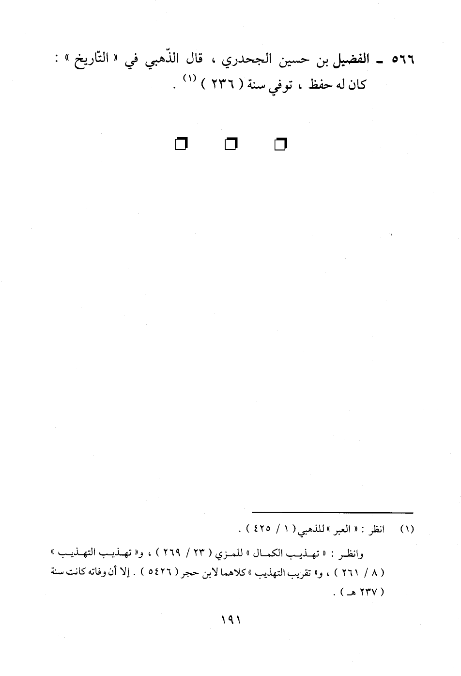 566 - الفضيل بن حسين الجحدري، قال الذّهبي في "التّاريخ": كان له حفظ، توفي سنة (236) (¬1).