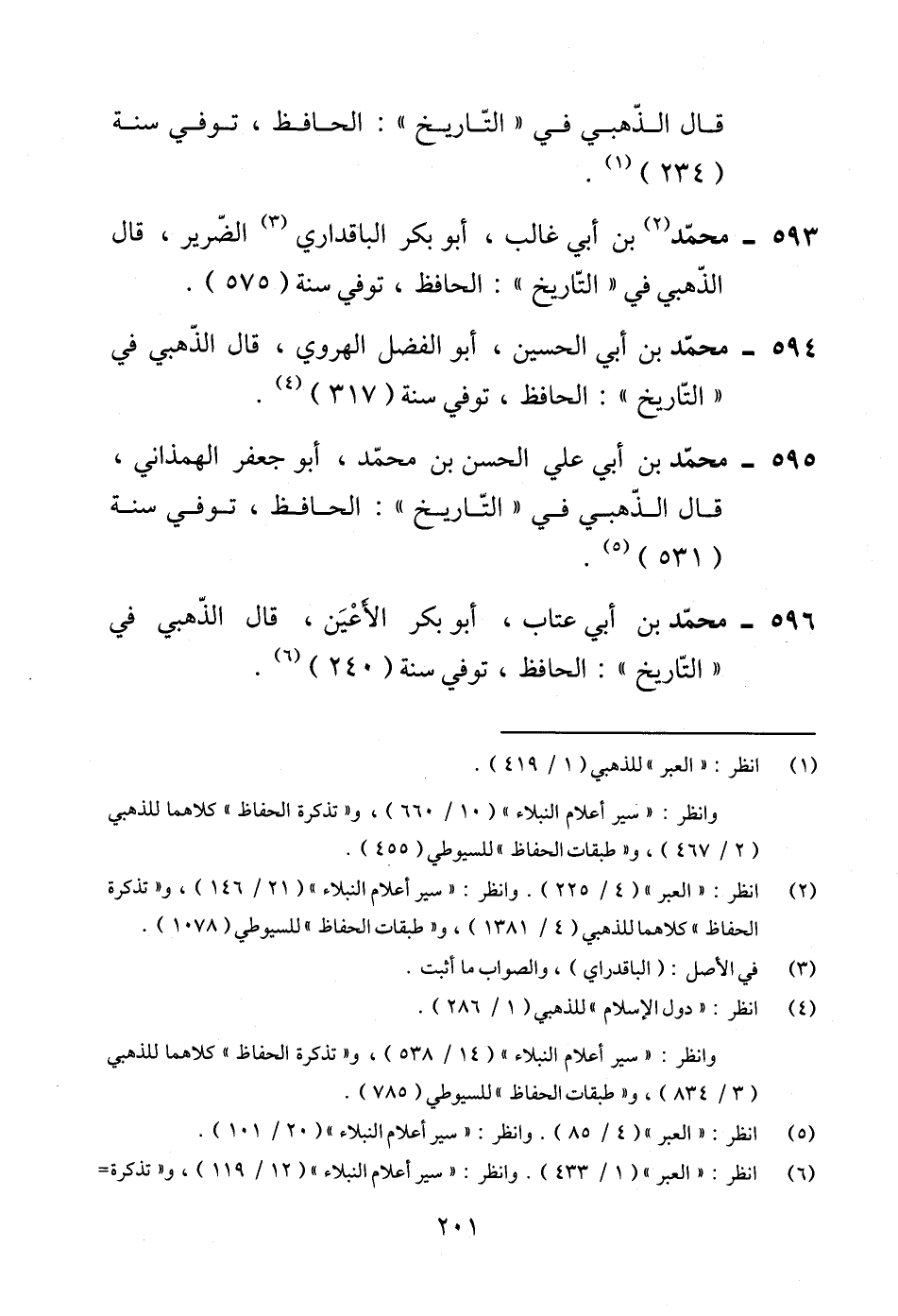 595 - محمّد بن أبي على الحسن بن محمّد، أبو جعفر الهمذاني، قال الذّهبي في "التّاريخ": الحافظ، توفي سنة (531) (¬5).