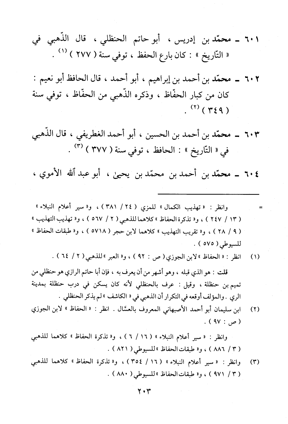 601 - محمّد بن إدريس، أبو حاتم الحنظلي، قال الذّهبي "التّاريخ": كان بارع الحفظ، توفي سنة (277) (¬1).