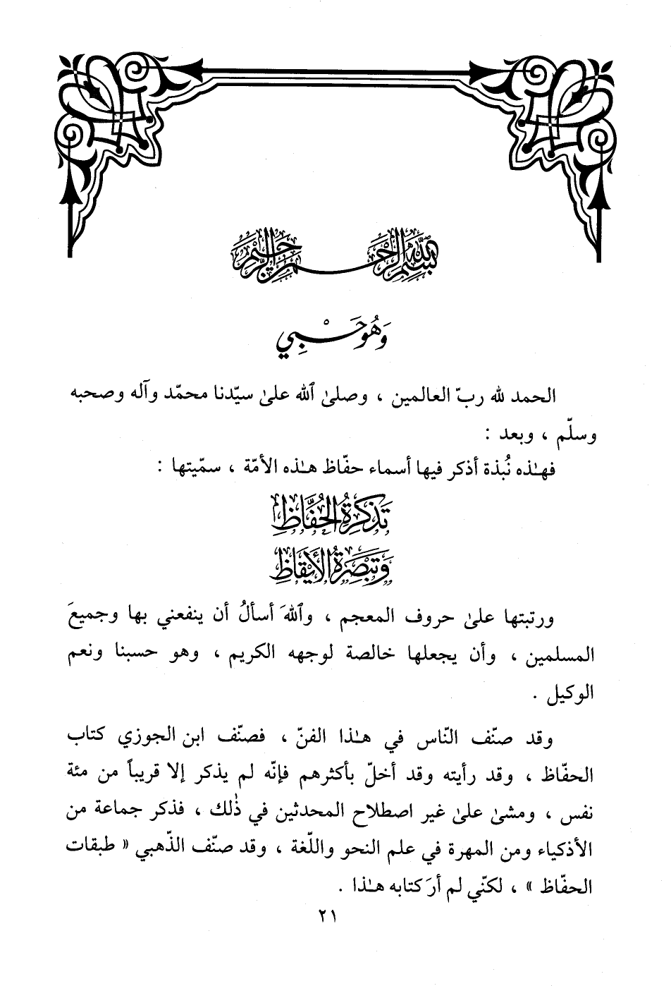 فهذه نُبذة أذكر فيها أسماء حفّاظ هذه الأمّة، سمّيتها:
