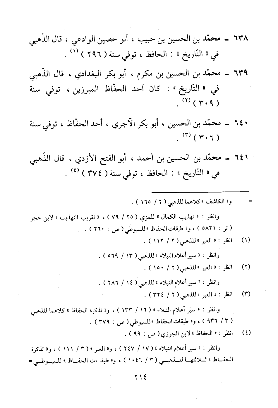 638 - محمّد بن الحسين بن حبيب، أبو حصين الوادعي، قال الذّهبي في "التّاريخ": الحافظ، توفي سنة (296) (¬1).