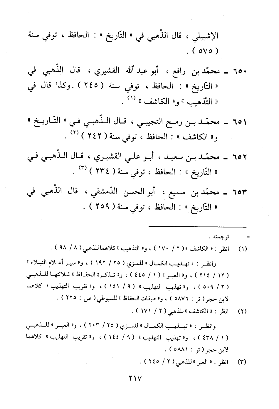 650 - محمّد بن رافع، أبو عبد الله القشيري، قال الذّهبي في "التّاريخ": الحافظ، توفي سنة (245). وكذا قال في "التّذهيب" و"الكاشف" (¬1).
