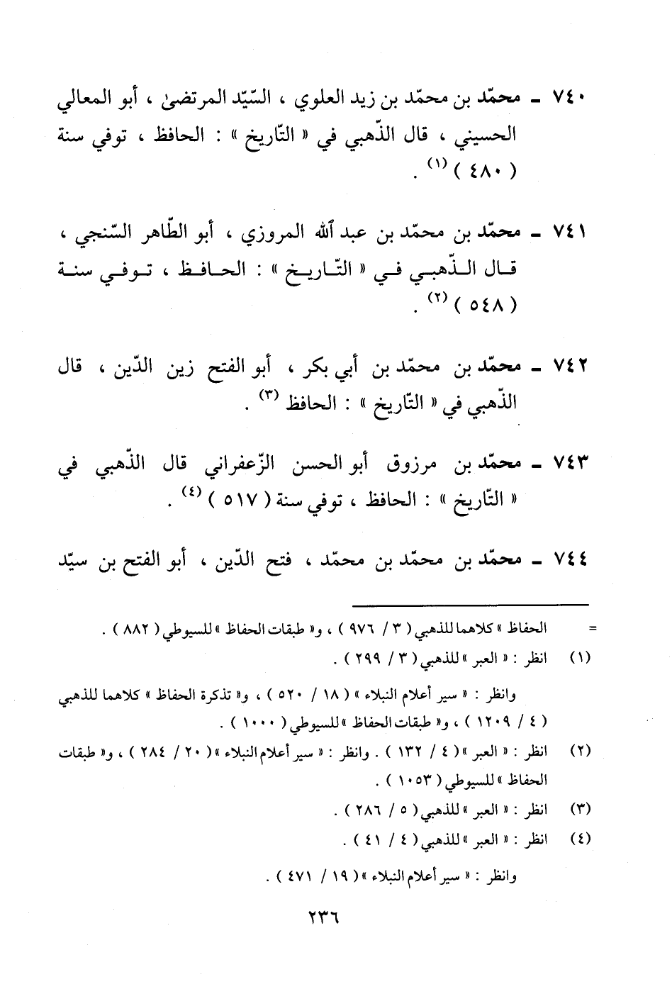 740 - محمّد بن محمّد بن زيد العلوي، السّيّد المرتضى، أبو المعالي الحسيني، قال الذّهبي في "التّاريخ": الحافظ، توفي سنة (480) (¬1).