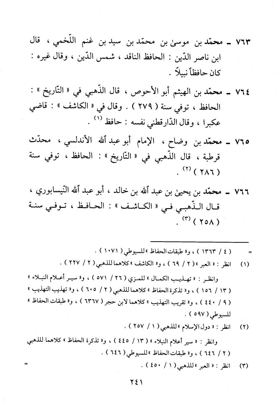 766 - محمّد بن يحيى بن عبد الله بن خالد، أبو عبد الله النّيسابوري، قال الذّهبي في "الكاشف": الحافظ، توفي سنة (258) (¬3).