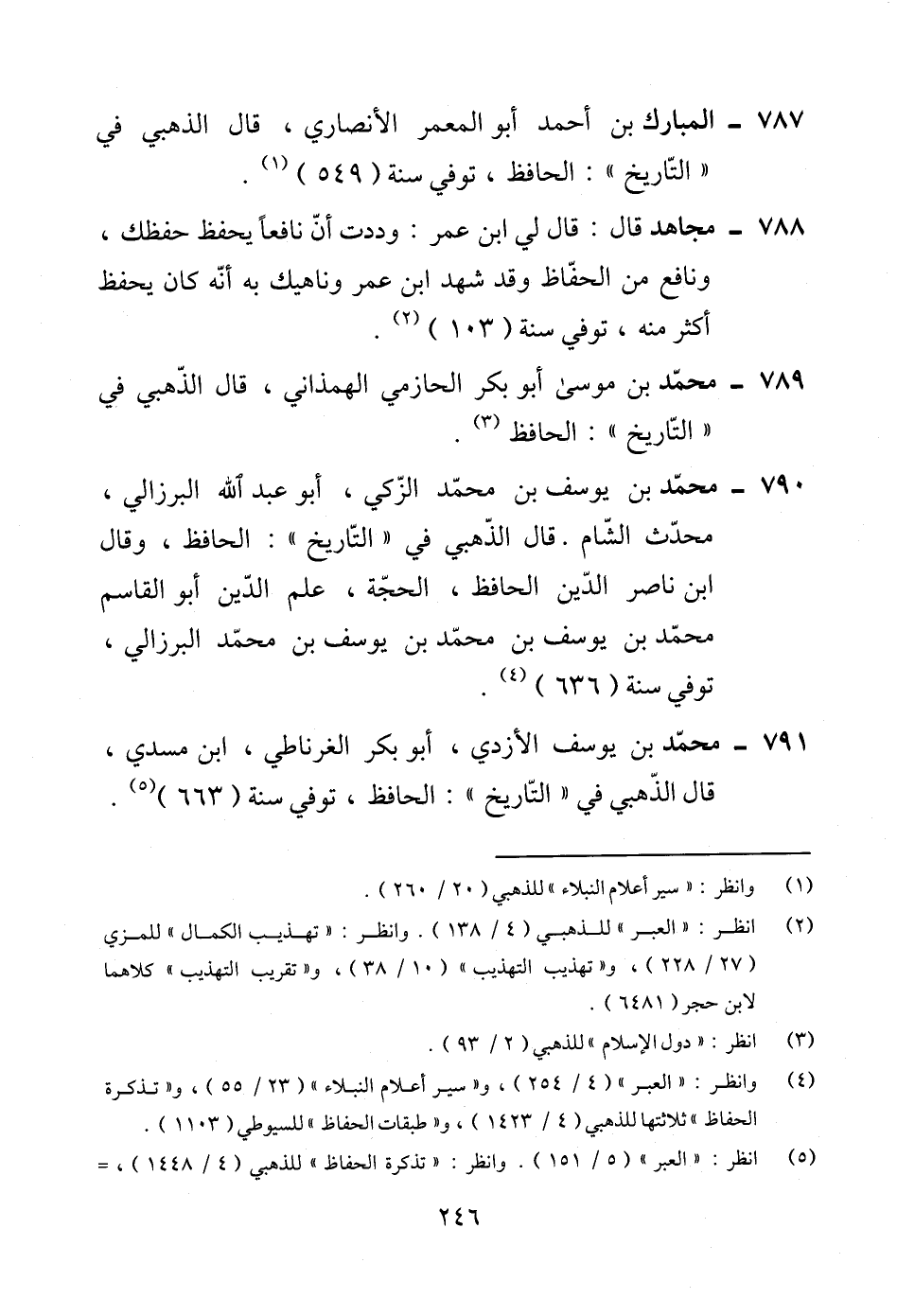 789 - محمّد بن موسى أبو بكر الحازمي الهمذاني، قال الذّهبي في "التّاريخ": الحافظ (¬3).