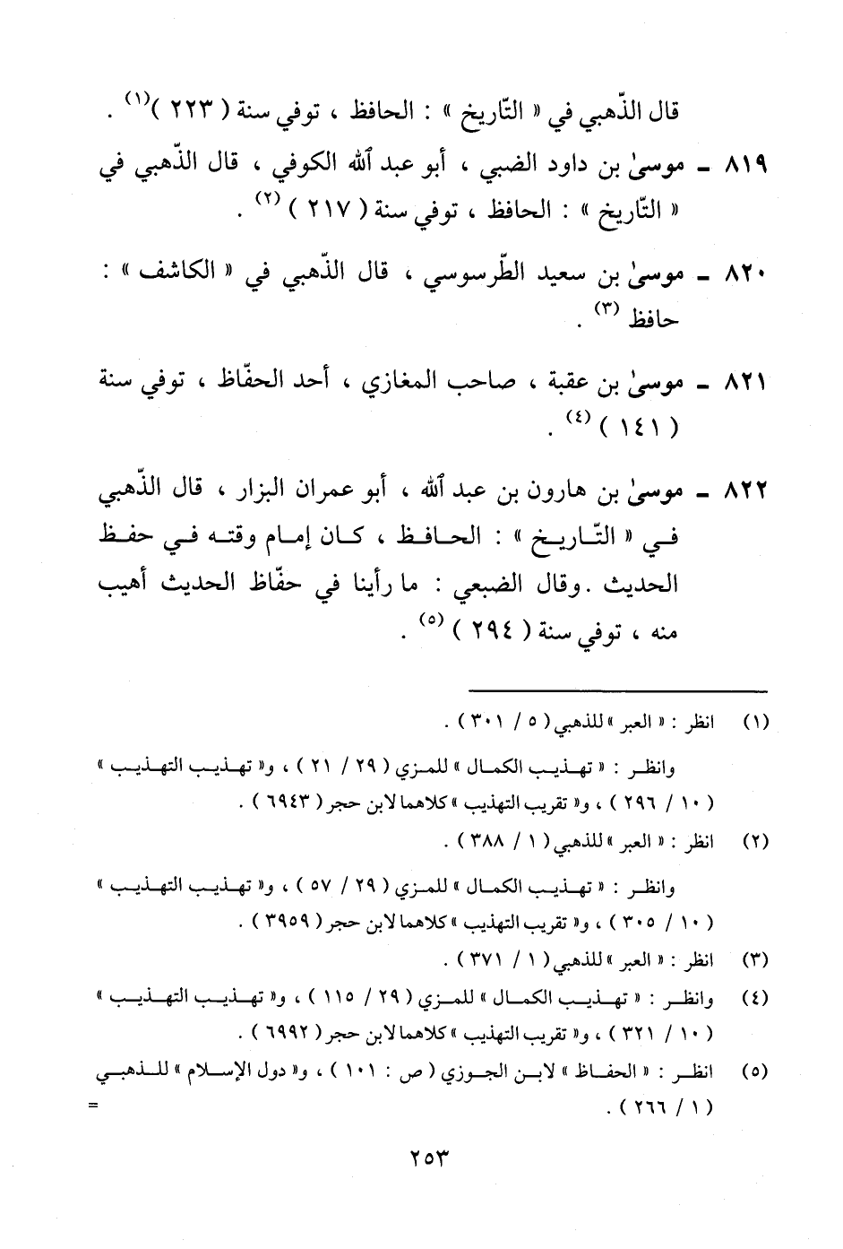 819 - موسى بن داود الضبي، أبو عبد الله الكوفي، قال الذّهبي في "التّاريخ": الحافظ، توفي سنة (217) (¬2).