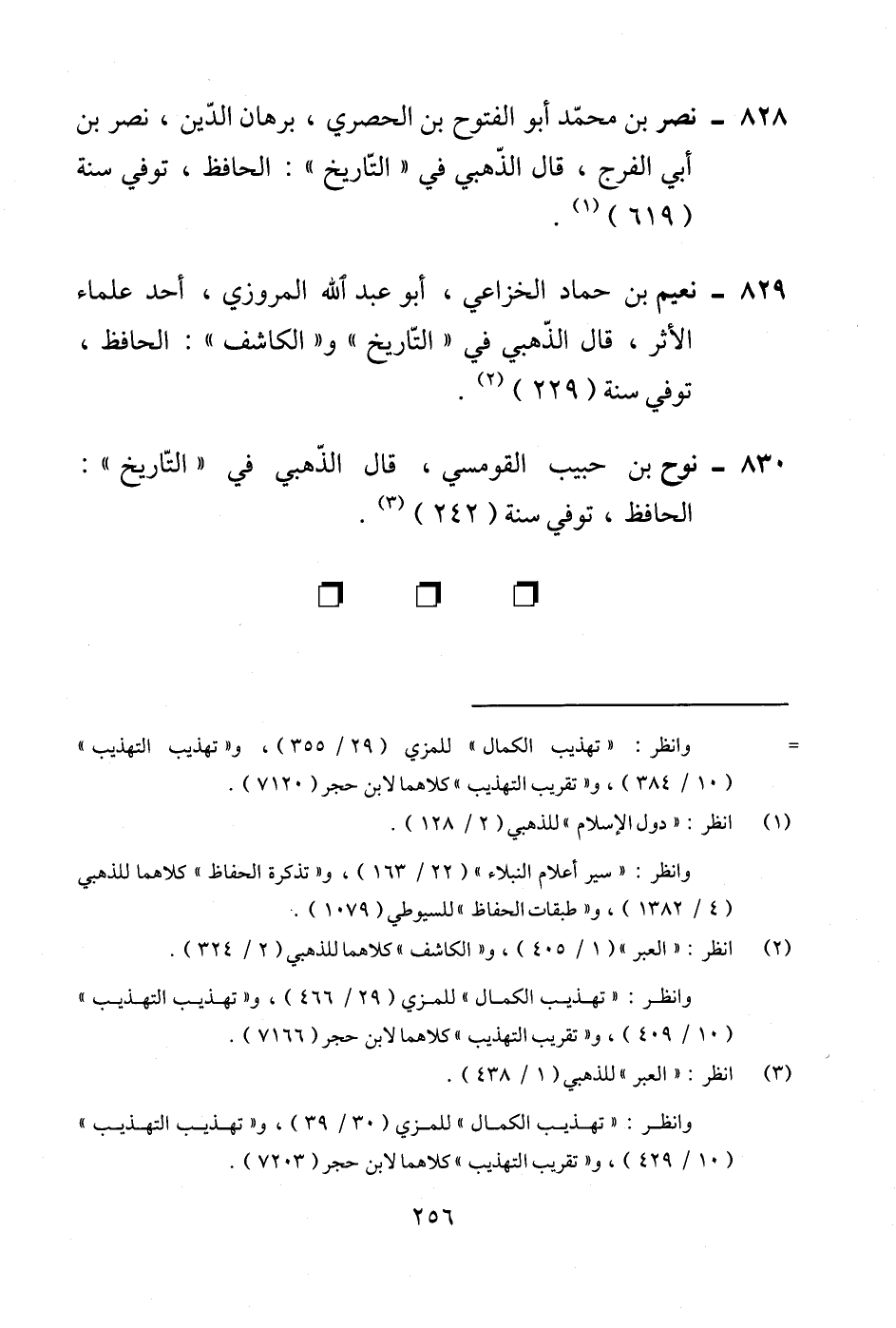 829 - نعيم بن حماد الخزاعي، أبو عبد الله المروزي، أحد علماء الأثر، قال الذّهبي في "التّاريخ" و"الكاشف": الحافظ، توفي سنة (229) (¬2).