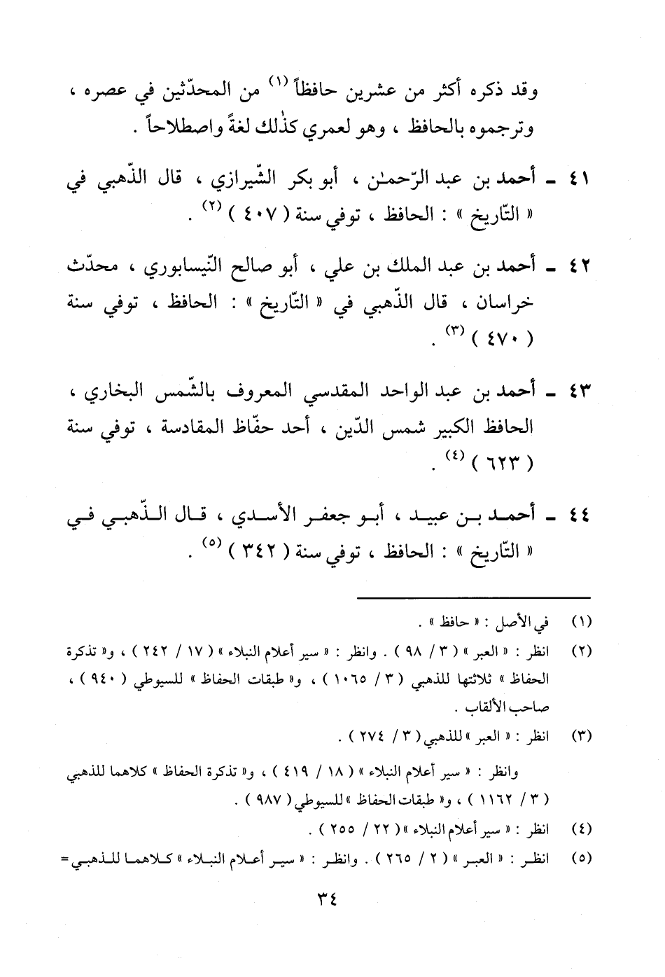 41 - أحمد بن عبد الرحمن، أبو بكر الشّيرازي، قال الذّهبي في "التّاريخ": الحافظ، توفي سنة (407) (¬2).