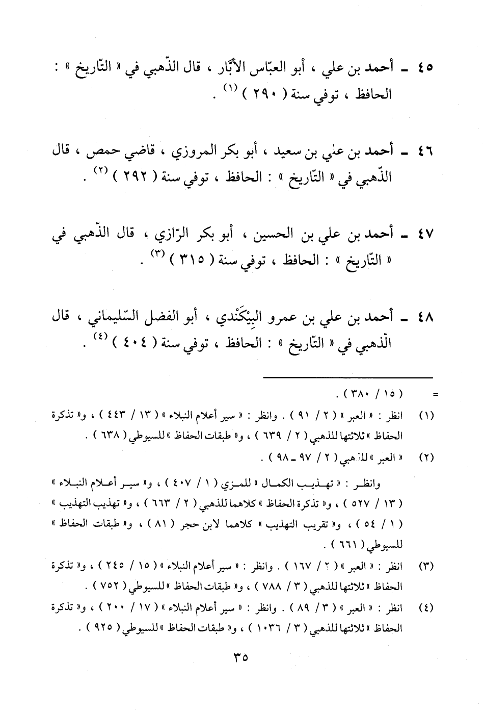 48 - أحمد بن علي بن عمرو البِيْكَنْدي، أبو الفضل السّليماني، قال الّذهبي في "التّاريخ": الحافظ، توفي سنة (404) (¬4).