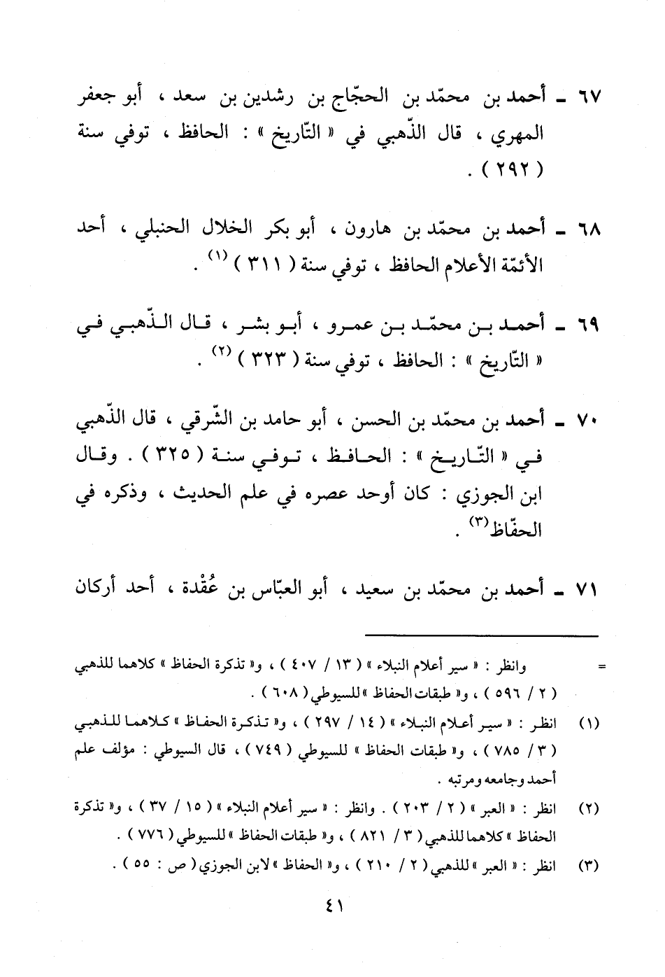 70 - أحمد بن محمّد بن الحسن، أبو حامد بن الشّرقي، قال الذّهبي في "التّاريخ": الحافظ، توفي سنة (325). وقال ابن الجوزي: كان أوحد عصره في علم الحديث، وذكره في الحفّاظ (¬3).