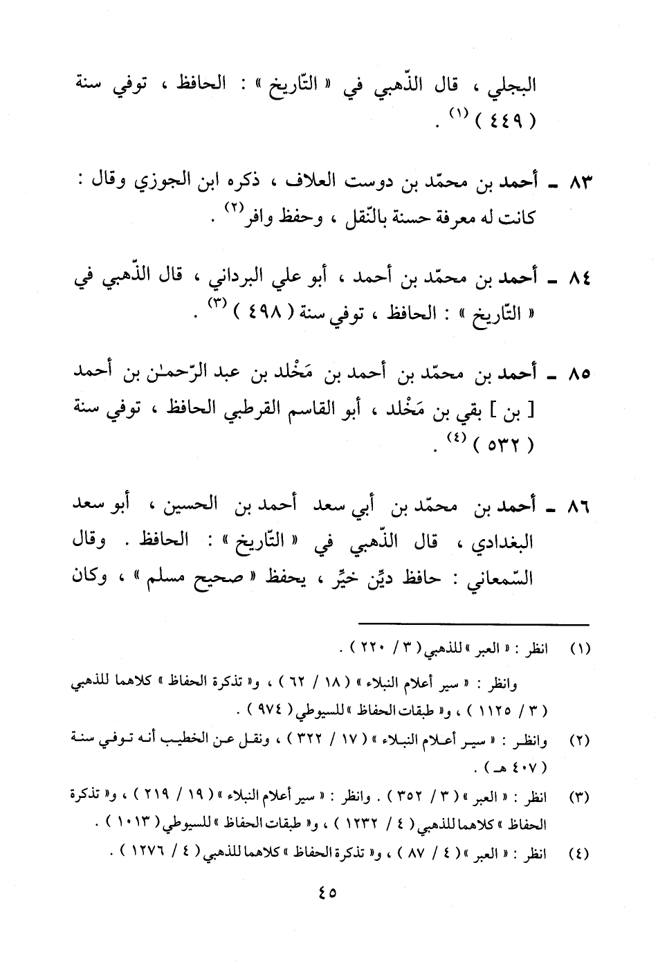 84 - أحمد بن محمّد بن أحمد، أبو على البرداني، قال الذّهبي في "التّاريخ": الحافظ، توفي سنة (498) (¬3).