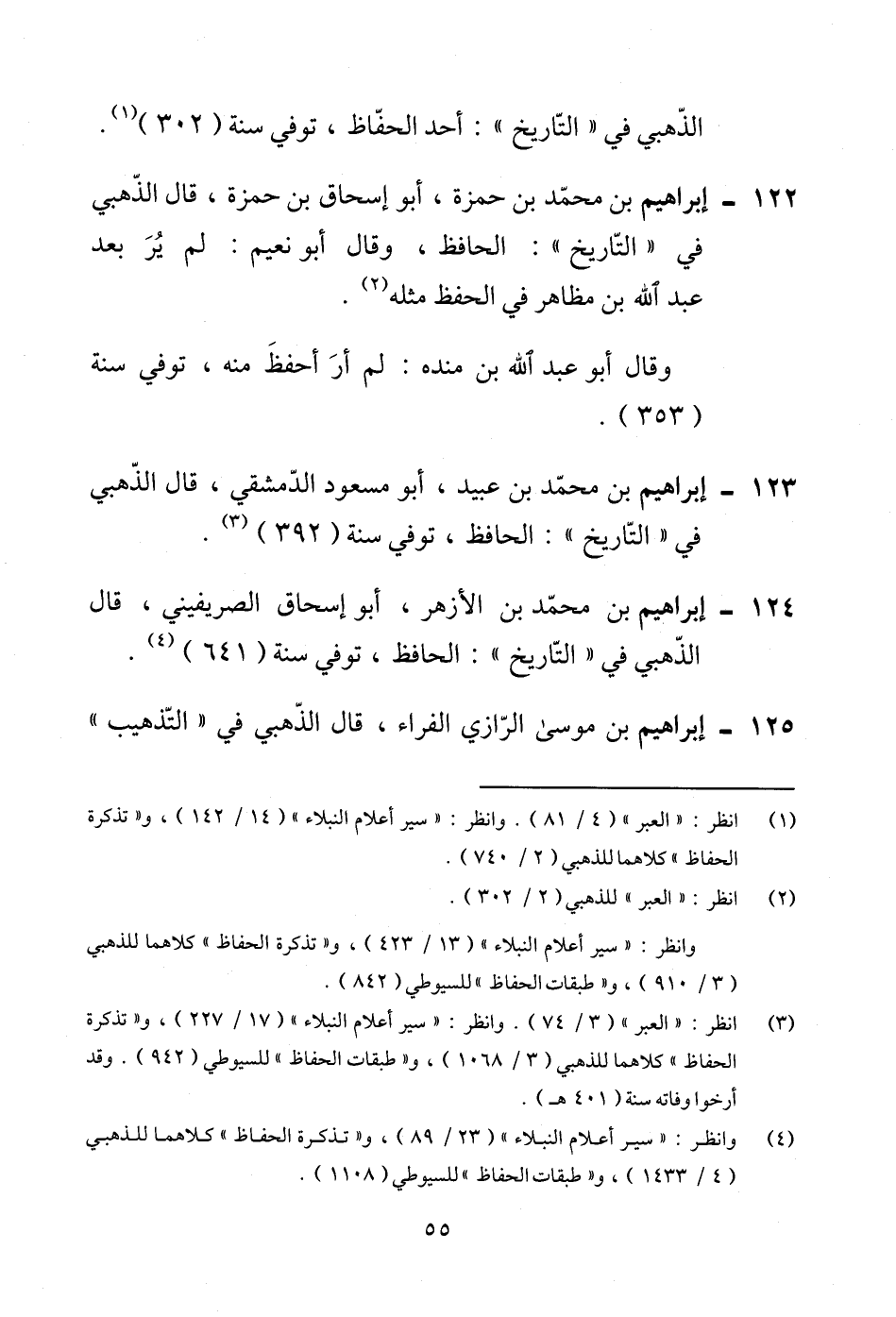124 - إبراهيم بن محمّد بن الأزهر، أبو إسحاق الصريفيني، قال الذّهبي في "التّاريخ": الحافظ، توفي سنة (641) (¬4).