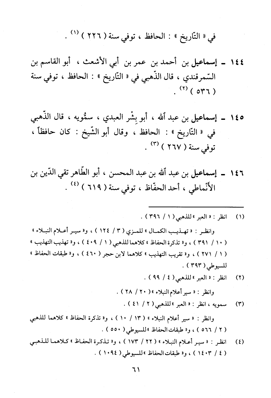 (¬4) انظر: "سير أعلام النبلاء" (22/ 173)، و"تذكرة الحفاظ" كلاهما للذهبي (4/ 1403)، و"طبقات الحفاظ" للسيوطي (1094).