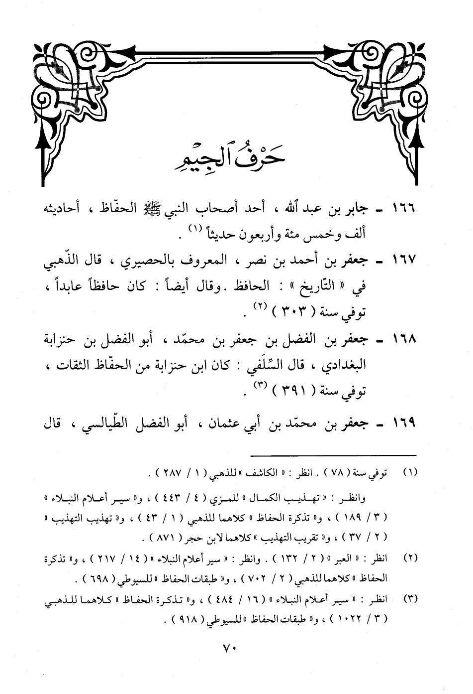 168 - جعفر بن الفضل بن جعفر بن محمّد، أبو الفضل بن حنزابة البغدادي، قال السِّلَفى: كان ابن حنزابة من الحفّاظ الثقات، توفي سنة (391) (¬3).