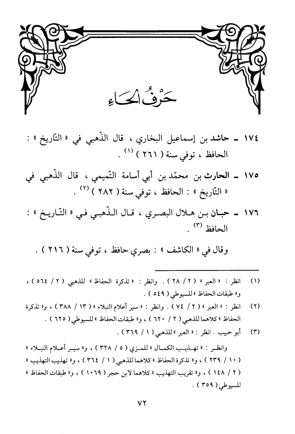174 - حاشد بن إسماعيل البخاري، قال الذّهبي في "التّاريخ": الحافظ، توفي سنة (261) (¬1).