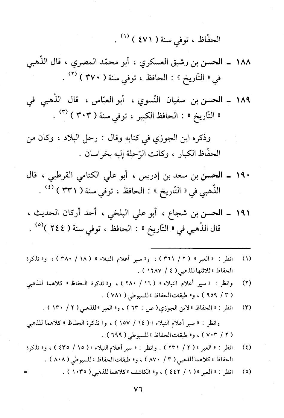 188 - الحسن بن رشيق العسكري، أبو محمّد المصري، قال الذّهبي في "التّاريخ": الحافظ، توفي سنة (370) (¬2).
