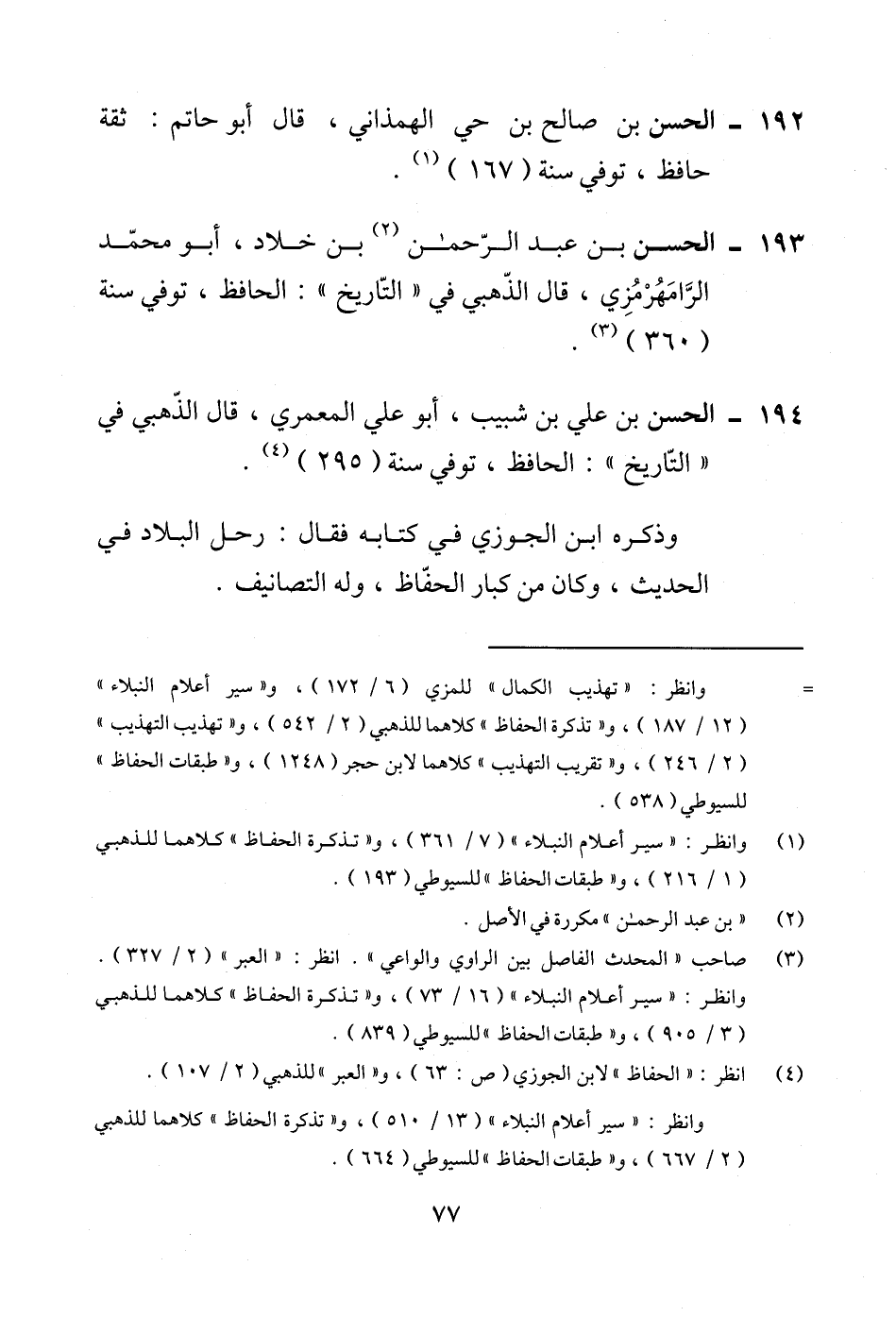193 - الحسن بن عبد الرحمن (¬2) بن خلاد، أبو محمّد الرَّامَهُرْمُزِي، قال الذّهبي في "التّاريخ": الحافظ، توفي سنة (360) (¬3).
