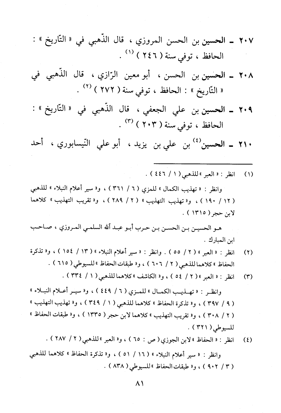 207 - الحسين بن الحسن المروزي، قال الذّهبي في "التّاريخ": الحافظ، توفي سنة (246) (¬1).
