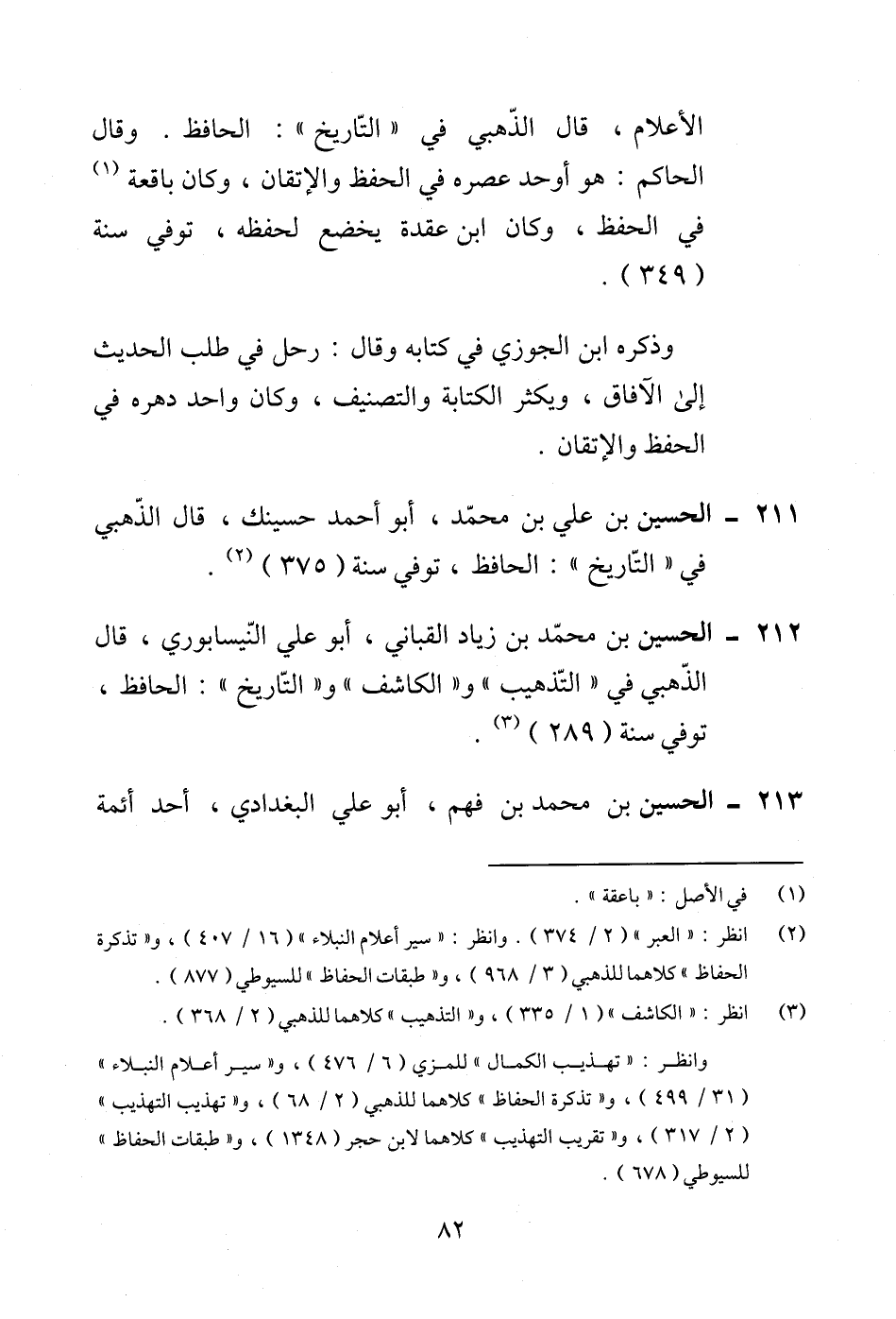 212 - الحسين بن محمّد بن زياد القباني، أبو علي النّيسابوري، قال الذّهبي في "التّذهيب" و"الكاشف" و"التّاريخ": الحافظ، توفي سنة (289) (¬3).