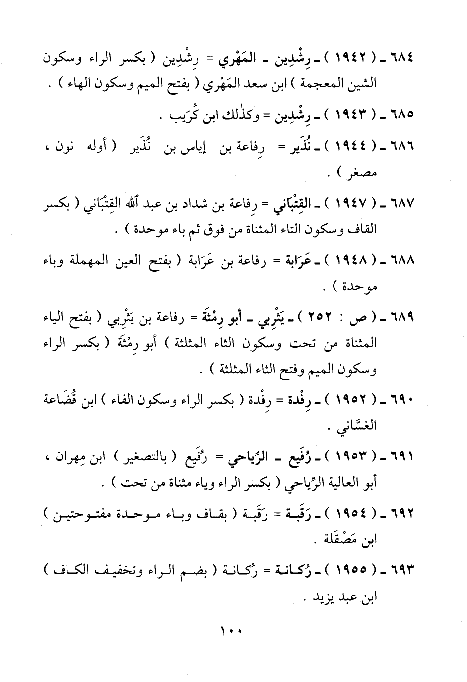 686 - (1944) - نُذَير = رِفاعة بن إياس بن نُذَير (أوله نون، مصغر).