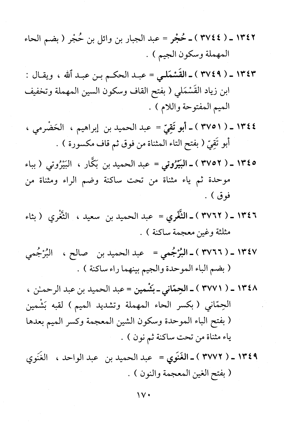 1345 - (3752) - البَيْرُوتي = عبد الحميد بن بَكَّار، البَيْرُوتي (بباء موحدة ثم ياء مئناة من تحت ساكنة وضم الراء ومثناة من فوق).