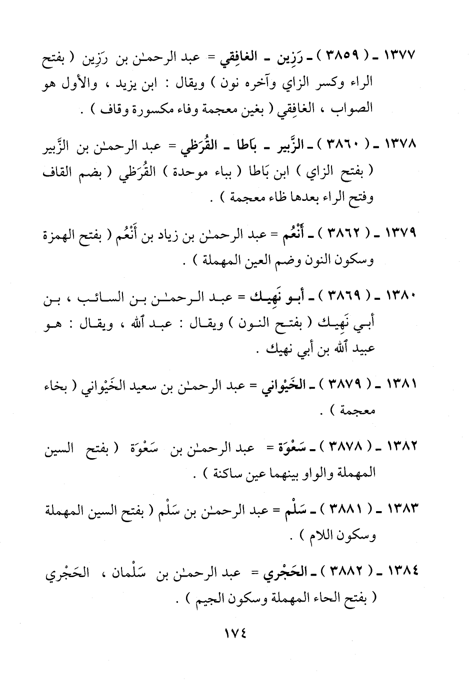 1377 - (3859) - رَزِين - الغافِقي = عبد الرحمن بن رَزِين (بفتح الراء وكسر الزاي وآخره نون) ويقال: ابن يزيد، والأول هو الصواب، الغافِقي (بغين معجمة وفاء مكسورة وقاف).