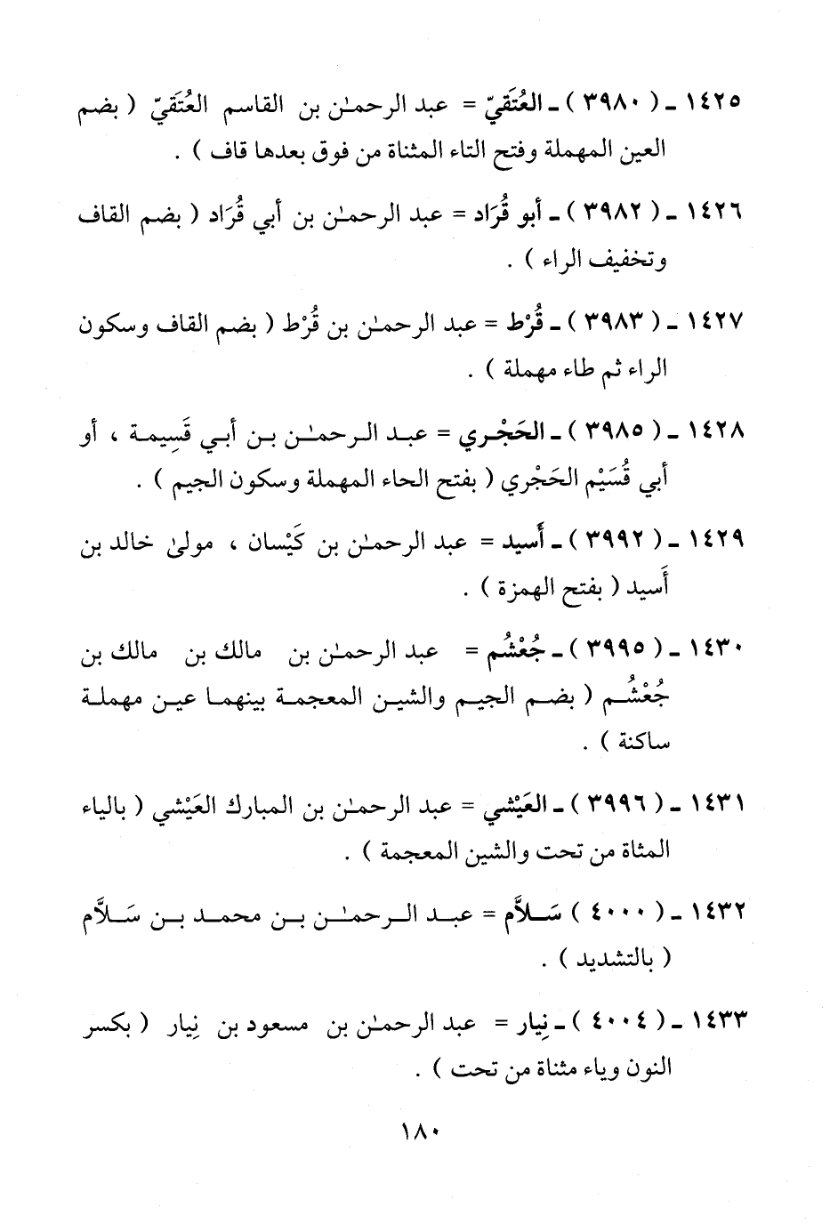1425 - (3980) - العُتَقيّ = عبد الرحمن بن القاسم العُتَقيّ (بضم العين المهملة وفتح التاء المثناة من فوق بعدها قاف).