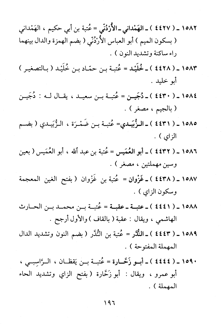 1582 - (4427) - الهَمْداني - الأُرْدُنّي = عُتبة بن أبي حكيم، الهَمْداني (بسكون الميم) أبو العباس الأُرْدُنِّي (بضم الهمزة والدال بينهما راء ساكنة وتشديد النون).