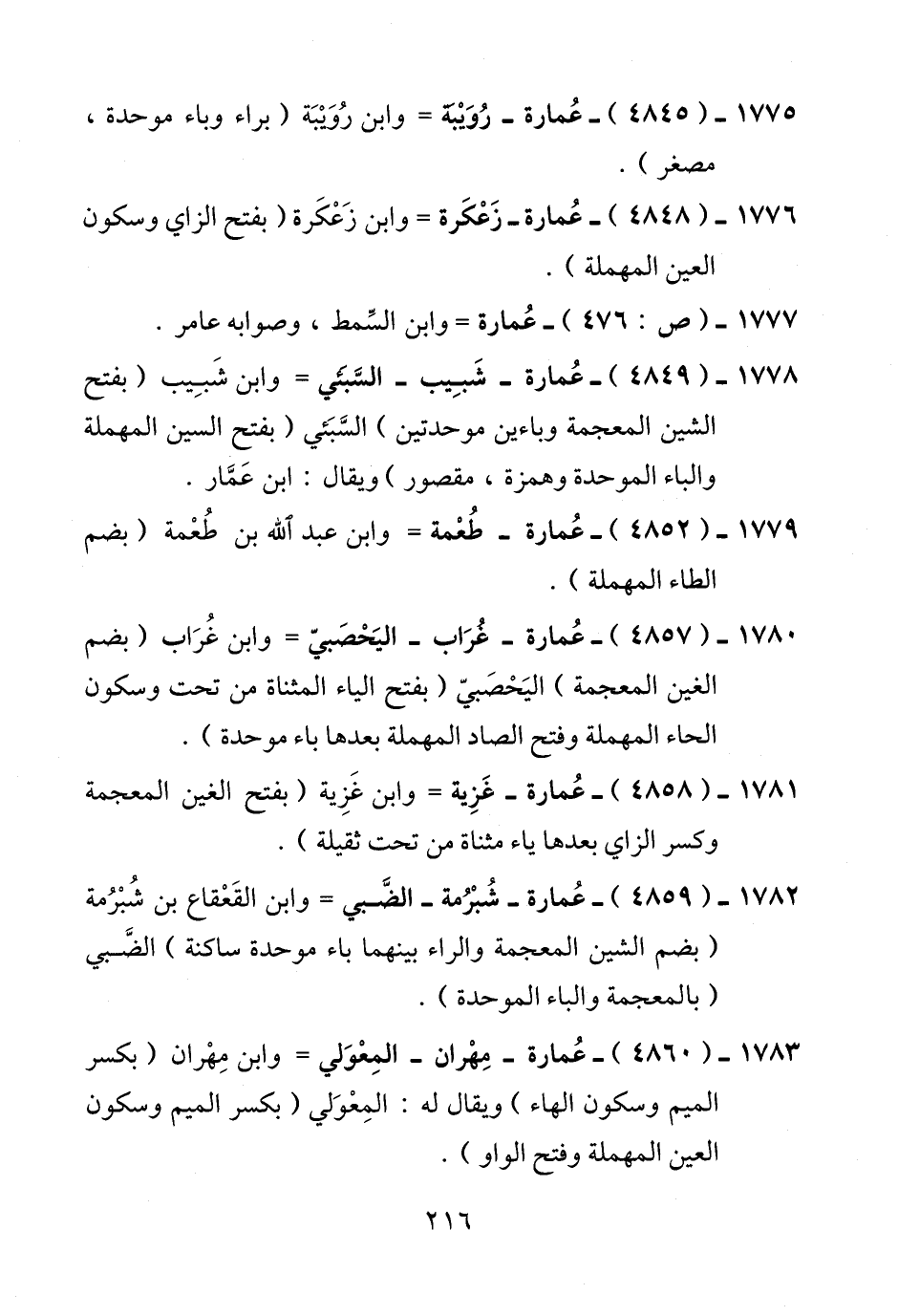 1780 - (4857) - عُمارة - غُرَاب - اليَحْصَبيّ = وابن غُرَاب (بضم الغين المعجمة) اليَحْصَبيّ (بفتح الياء المثناة من تحت وسكون الحاء المهملة وفتح الصاد المهملة بعدها باء موحدة).