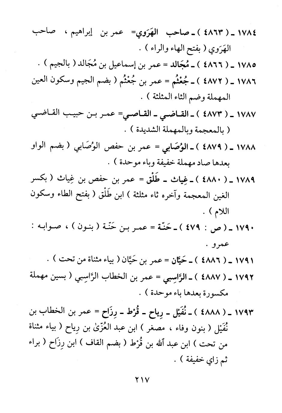 1793 - (4888) - نُفَيْل - رِياح - قُرْط - رِزَاح = عمر بن الخطاب بن نُفَيْل (بنون وفاء، مصغر) ابن عبد العُزّى بن رِياح (بياء مثناة من تحت) ابن عبد الله بن قُرْط (بضم القاف) ابن رِزَاح (براء ثم زاي خفيفة).