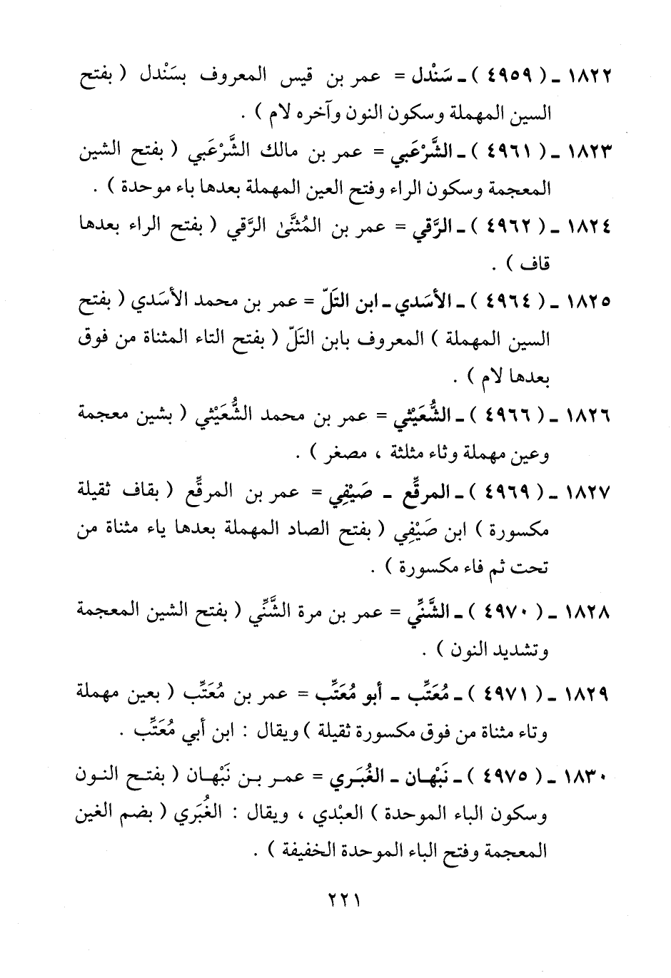 1823 - (4961) - الشَّرْعَبي = عمر بن مالك الشَّرْعَبي (بفتح الشين المعجمة وسكون الراء وفتح العين المهملة بعدها باء موحدة).