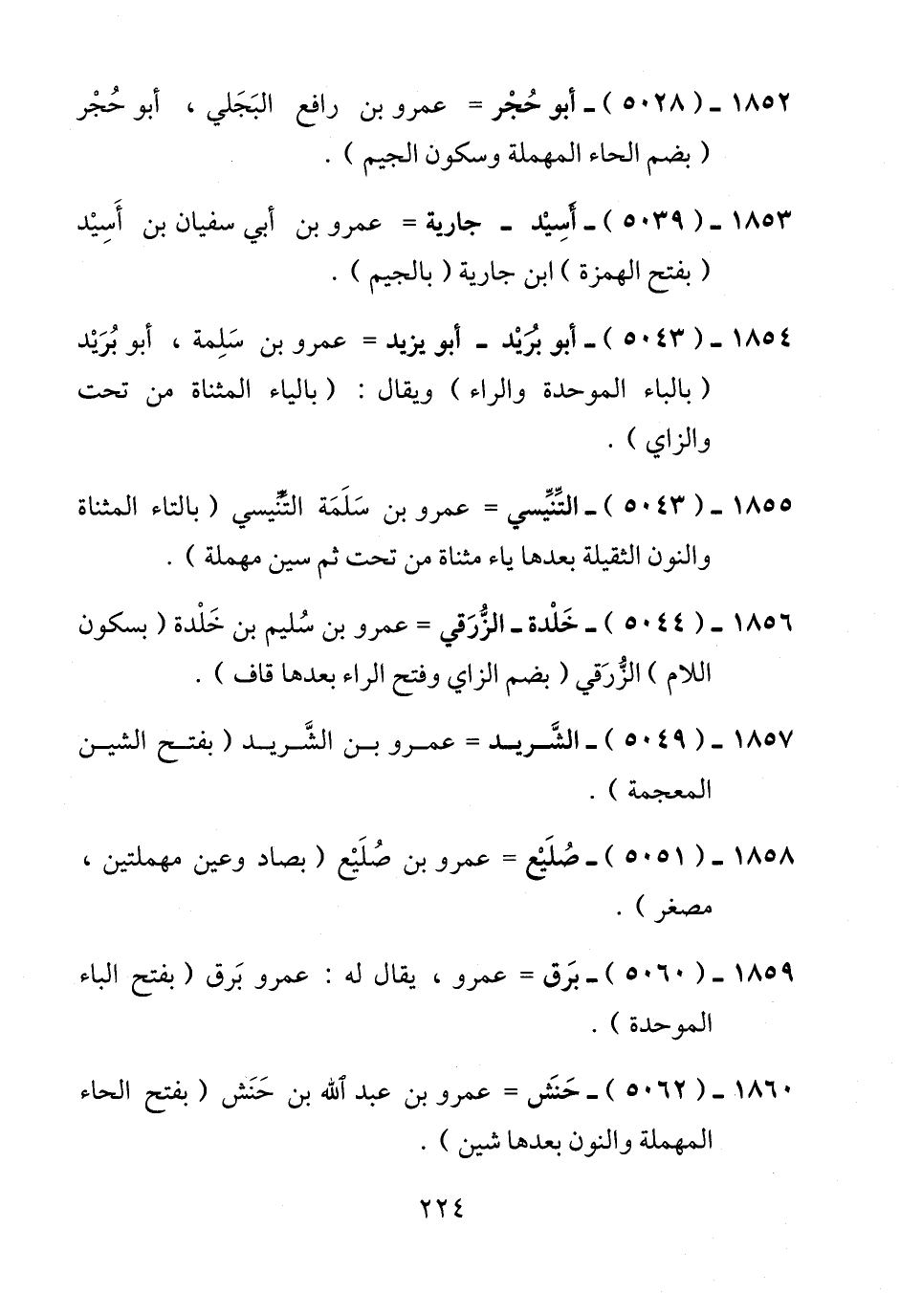 1855 - (5043) - التِّنيِّسي = عمرو بن سَلَمَة التِّنِّيسي (بالتاء المثناة والنون الثقيلة بعدها ياء مثناة من تحت ثم سين مهملة).