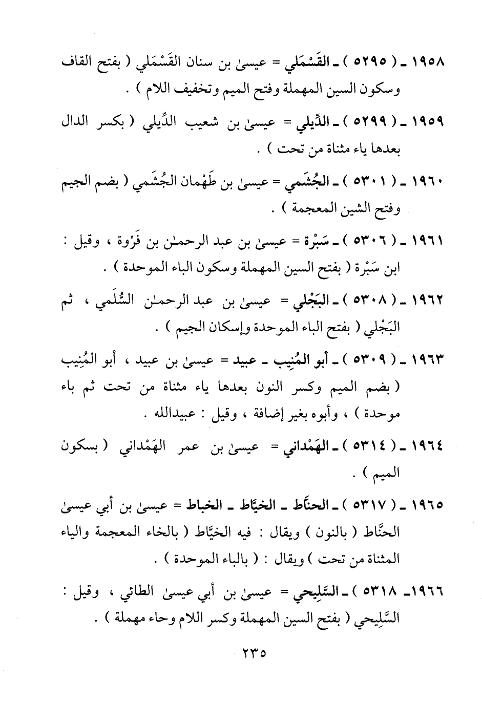 1962 - (5358) - البَجْلي = عيسى بن عبد الرحمن السُّلَمي، ثم البَجْلي (بفتح الباء الموحدة وإسكان الجيم).