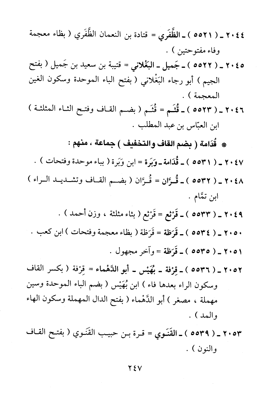2047 - (5531) - قُدَامة - وَبَرة = أبن وَبَرة (بباء موحدة وفتحات).