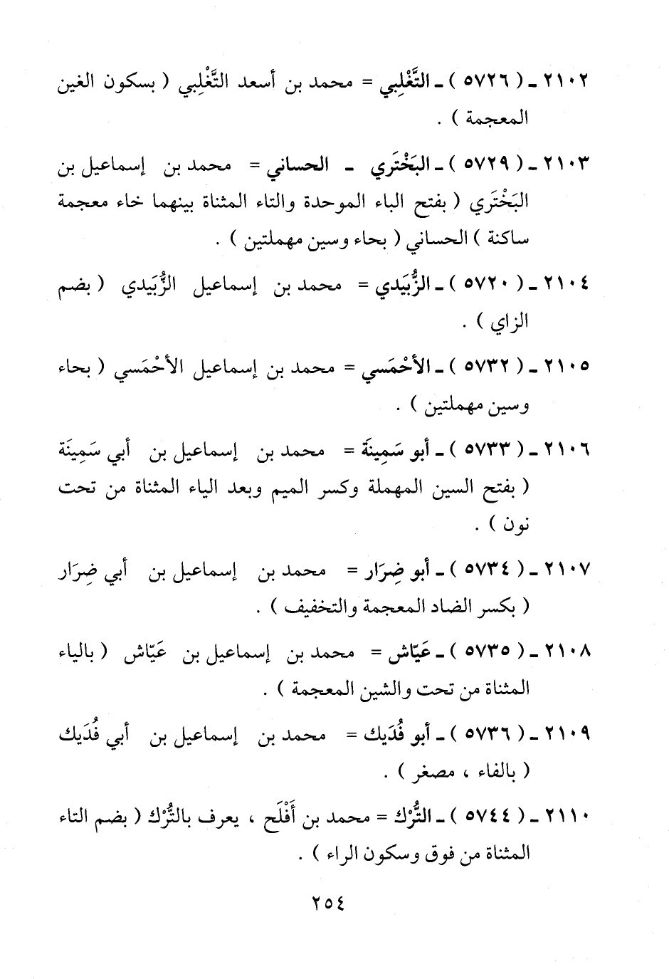 2103 - (5729) - البَخْتَري - الحساني = محمد بن إسماعيل بن البَخْتَري (بفتح الباء الموحدة والتاء المثناة بينهما خاء معجمة ساكنة) الحساني (بحاء وسين مهملتين).