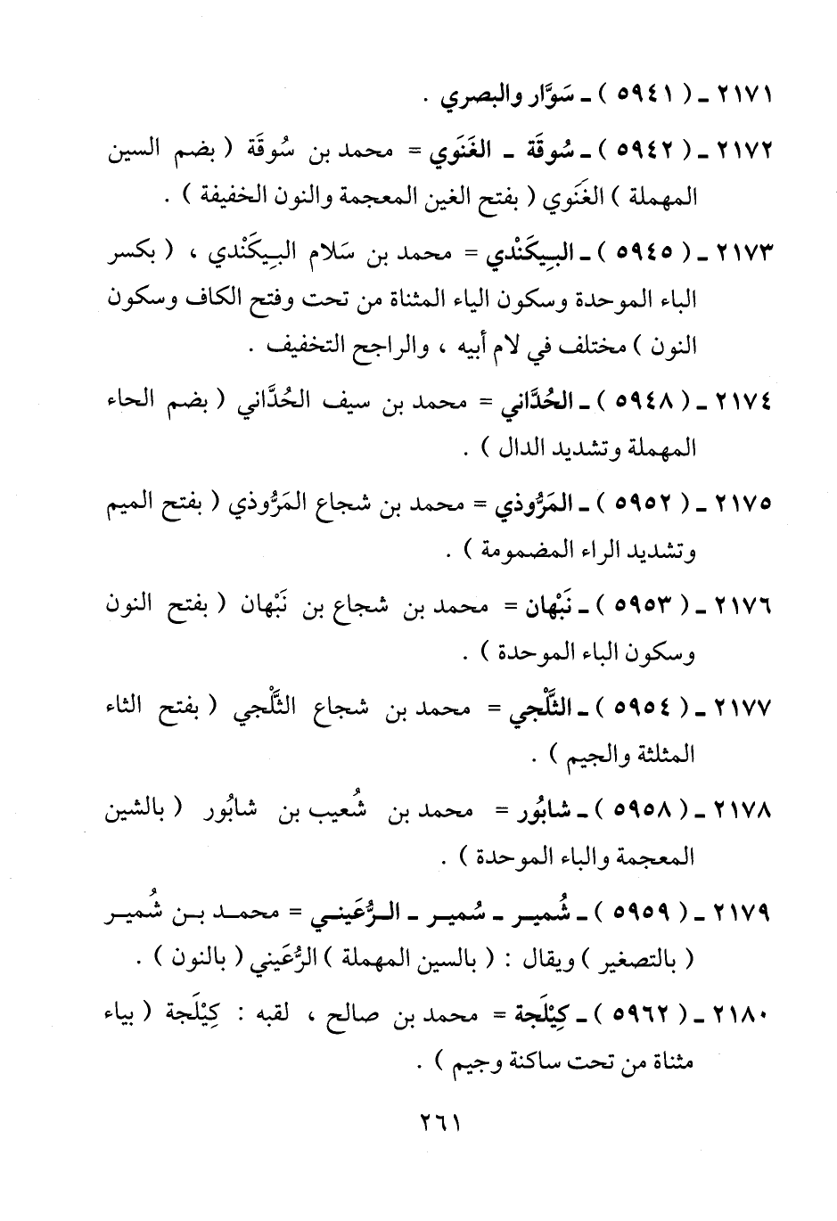 2173 - (5945) - البِيكَنْدي = محمد بن سَلام البِيكَنْدي، (بكسر الباء الموحدة وسكون الياء المثناة من تحت وفتح الكاف وسكون النون) مختلف في لام أبيه، والراجح التخفيف.