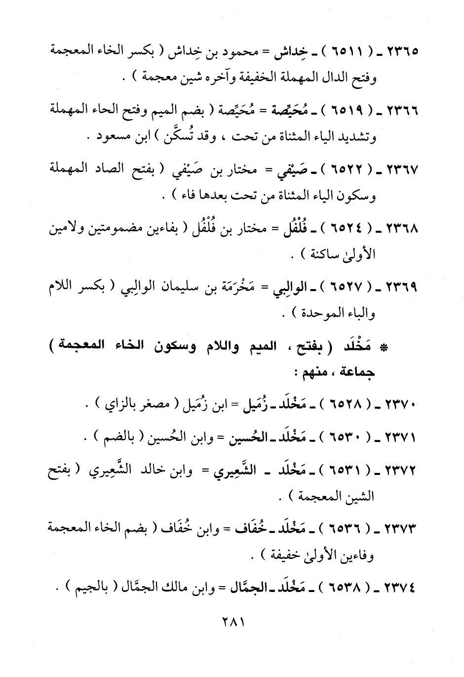 2373 - (6536) - مَخلَد - خُفَاف = وابن خُفَاف (بضم الخاء المعجمة وفاءين الأولى خفيفة).