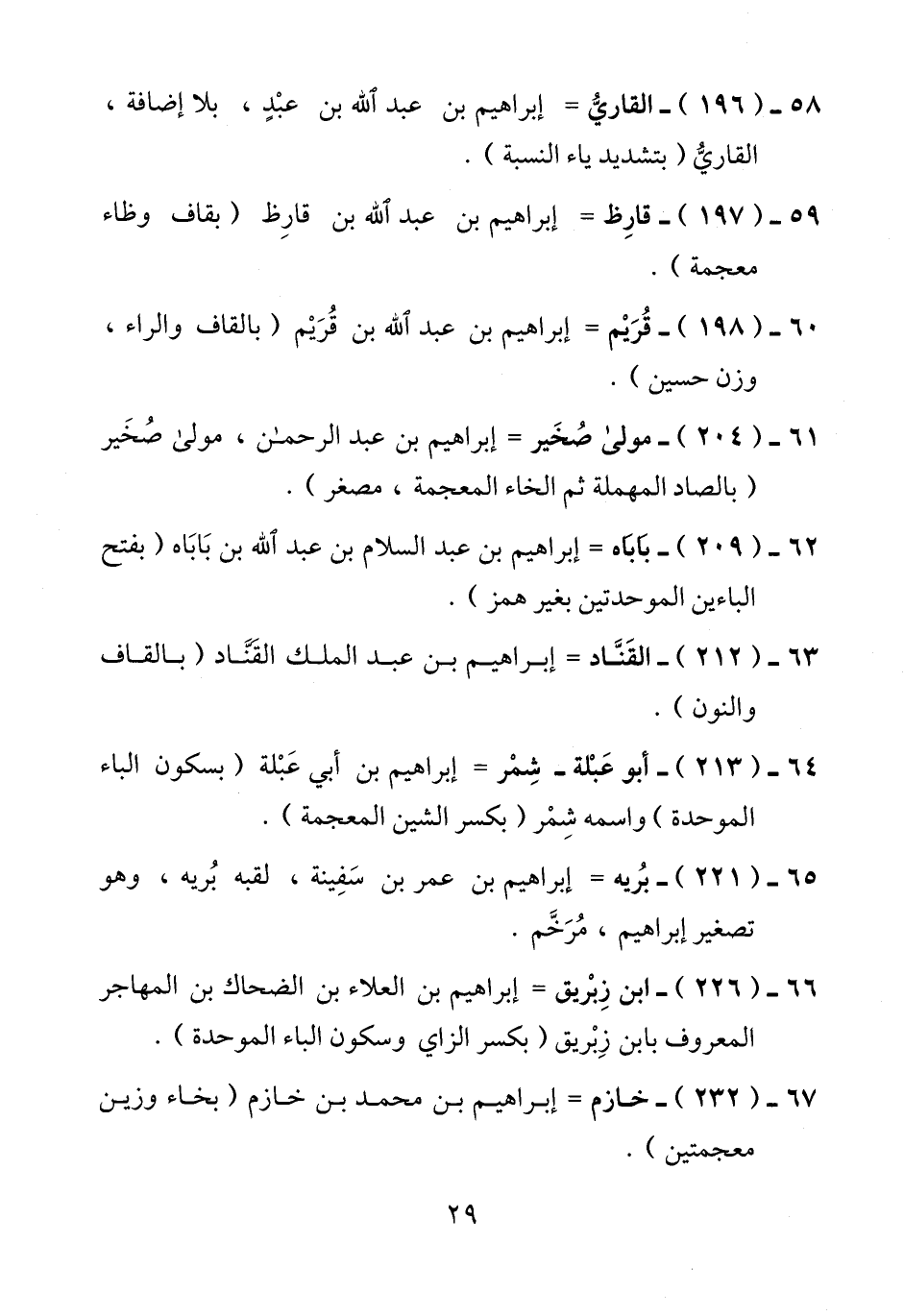 58 - (196) - القاريُّ = إبراهيم بن عبد الله بن عبْدٍ، بلا إضافة، القاريُّ (بتشديد ياء النسبة).