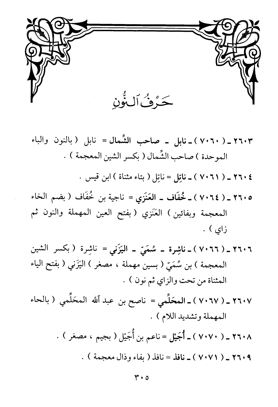 2603 - (7060) - نابل- صاحب الشِّمال = نابل (بالنون والباء الموحدة (صاحب الشِّمال (بكسر الشين المعجمة).