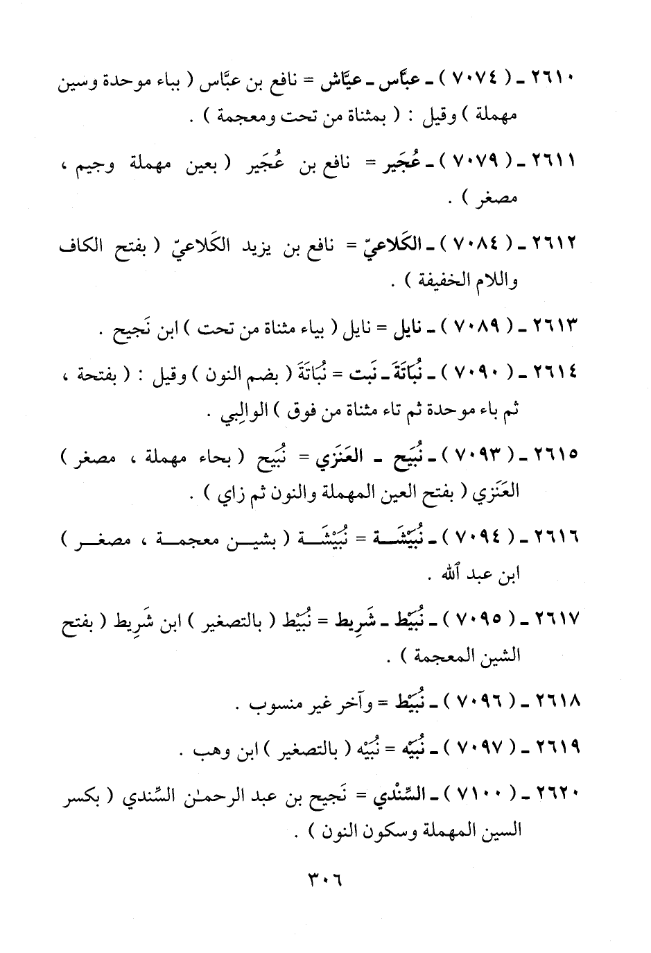 2610 - (7074) - عبَّاس - عبَّاس = نافع بن عبَّاس (بباء موحدة وسين مهملة) وقيل: (بمثناة من تحت ومعجمة).