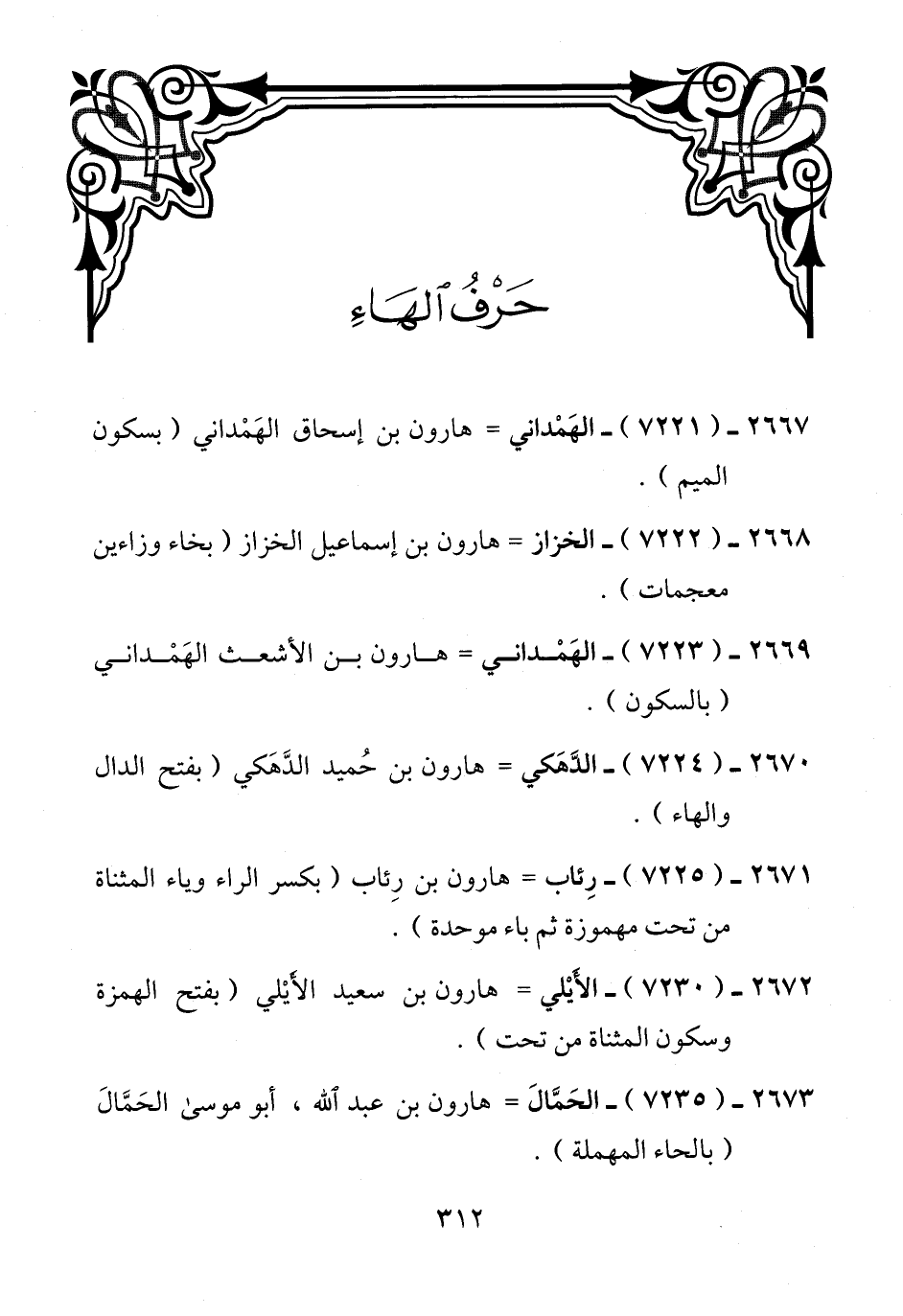 2667 - (7221) - الهَمْداني = هارون بن إسحاق الهَمْداني (بسكون الميم).