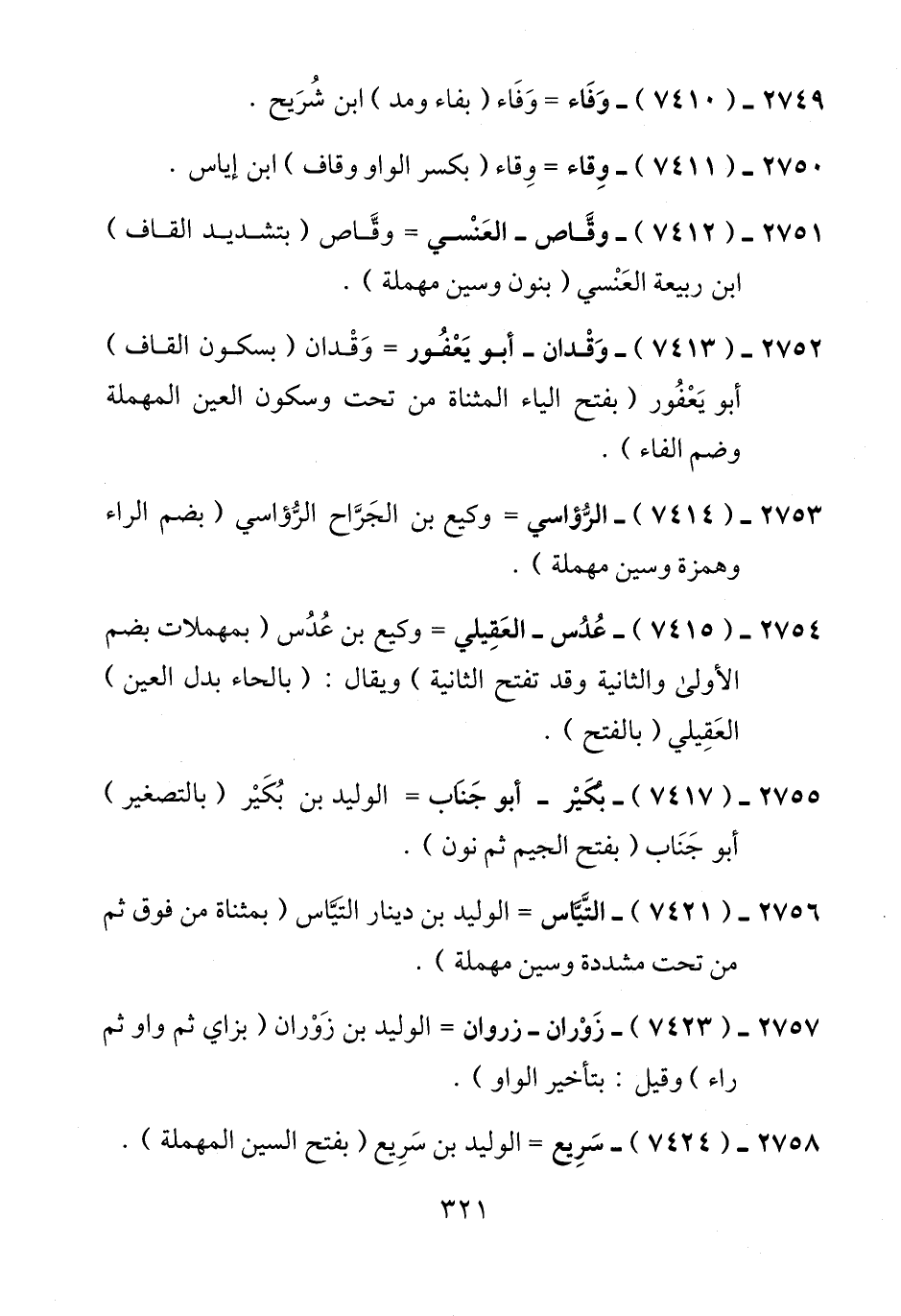 2751 - (7412) - وقَّاص - العَنْسي = وقَّاص (بتشديد القاف) ابن ربيعة العَنْسي (بنون وسين مهملة).