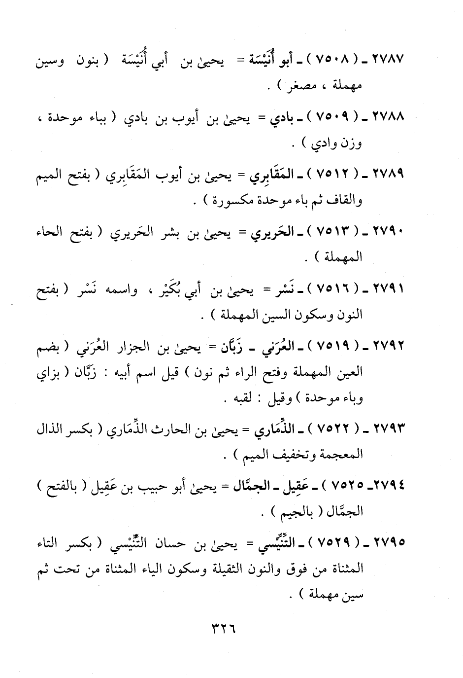 2792 - (7519) - العُرَني - زَبَّان = يحيى بن الجزار العُرَني (بضم العين المهملة وفتح الراء ثم نون) قيل اسم أبيه: زَبَّان (بزاي وباء موحدة) وقيل: لقبه.