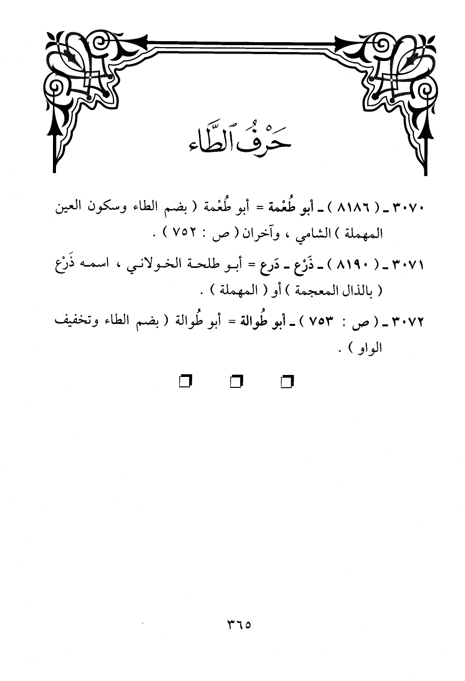 3070 - (8186) - أبو طُعْمة = أبو طُعْمة (بضم الطاء وسكون العين المهملة) الشامي، وآخران (ص: 752).