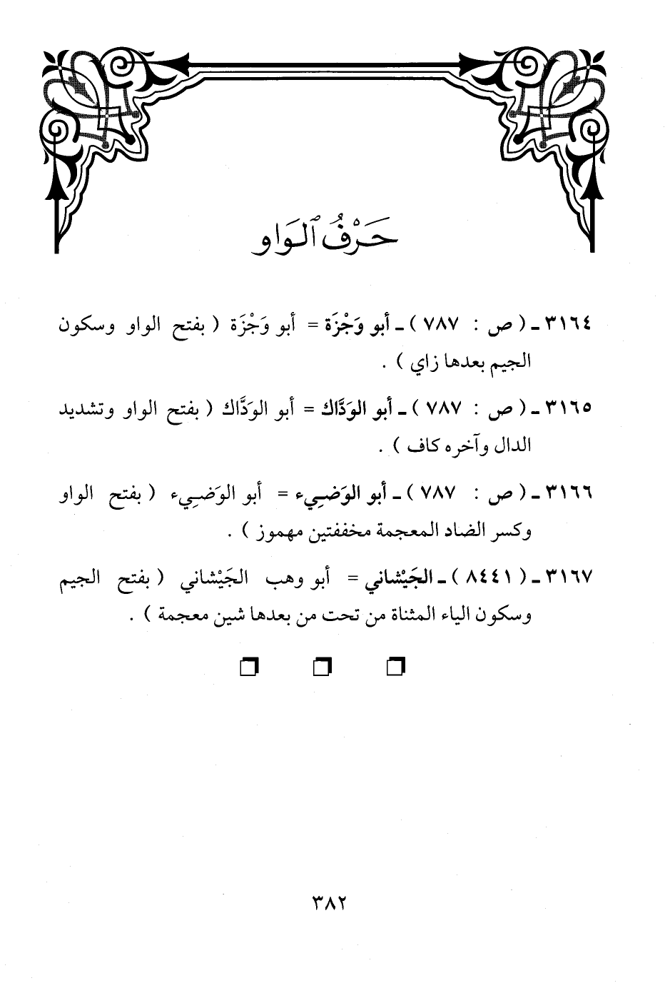 3166 - (ص: 787) - أبو الوَضِيء = أبو الوَضِيء (بفتح الواو وكسر الضاد المعجمة مخففتين مهموز).