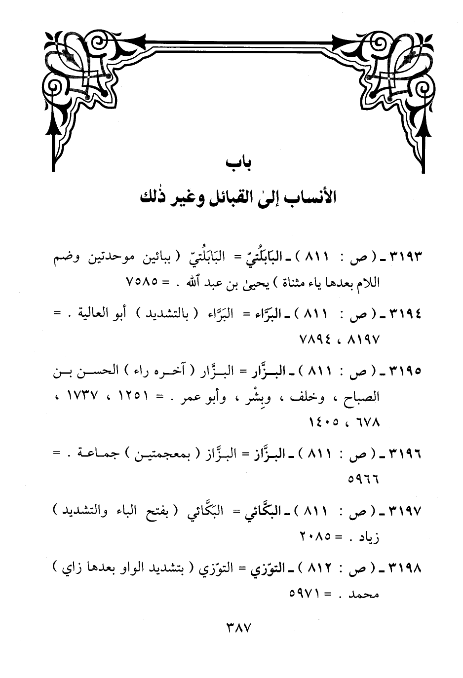 3196 - (ص: 811) - البزَّاز = البزَّاز (بمعجمتين) جماعة. = 5966