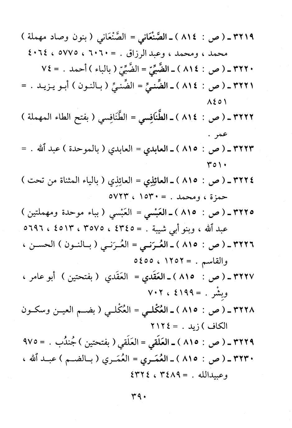 3230 - (ص: 815) - العُمَري = العُمَري (بالضم) عبد الله، وعبيد الله. = 3489، 4324